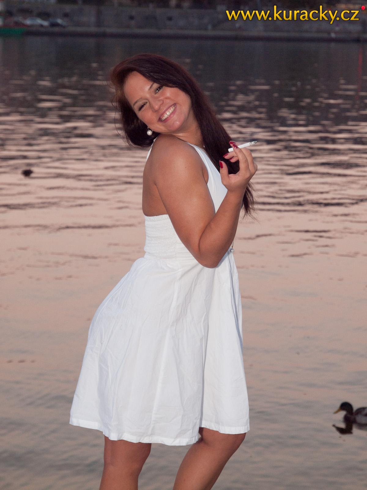 Kouzlo oslovování pro náš projekt na náplavce u pražské Vltavy objevujeme teprve relativně krátký čas (ačkoli jsme tam v minulosti absolvovali domluvená focení) - díky tomu jsme tam mohli jeden podvečer zastihnout kuřačky Olu a Helenu na pikniku, které pořádaly u příležitosti oslav 24. narozenin první z nich. K tomu patřila i dobrá nálada a cigaretky. Naši nabídku obě holky vzaly i jako výzvu, uspět v soutěži Miss Kuřačka 2012. Ani si neuvědomuji, kolik času jsme focením a natáčením strávili, nicméně se akce protáhla ze světla až do tmy (kdy jsme si pomohli mobilním nasvícením a budili i pozornost v duchu, že fotíme celebrity - i když možná, budoucí :-) ).